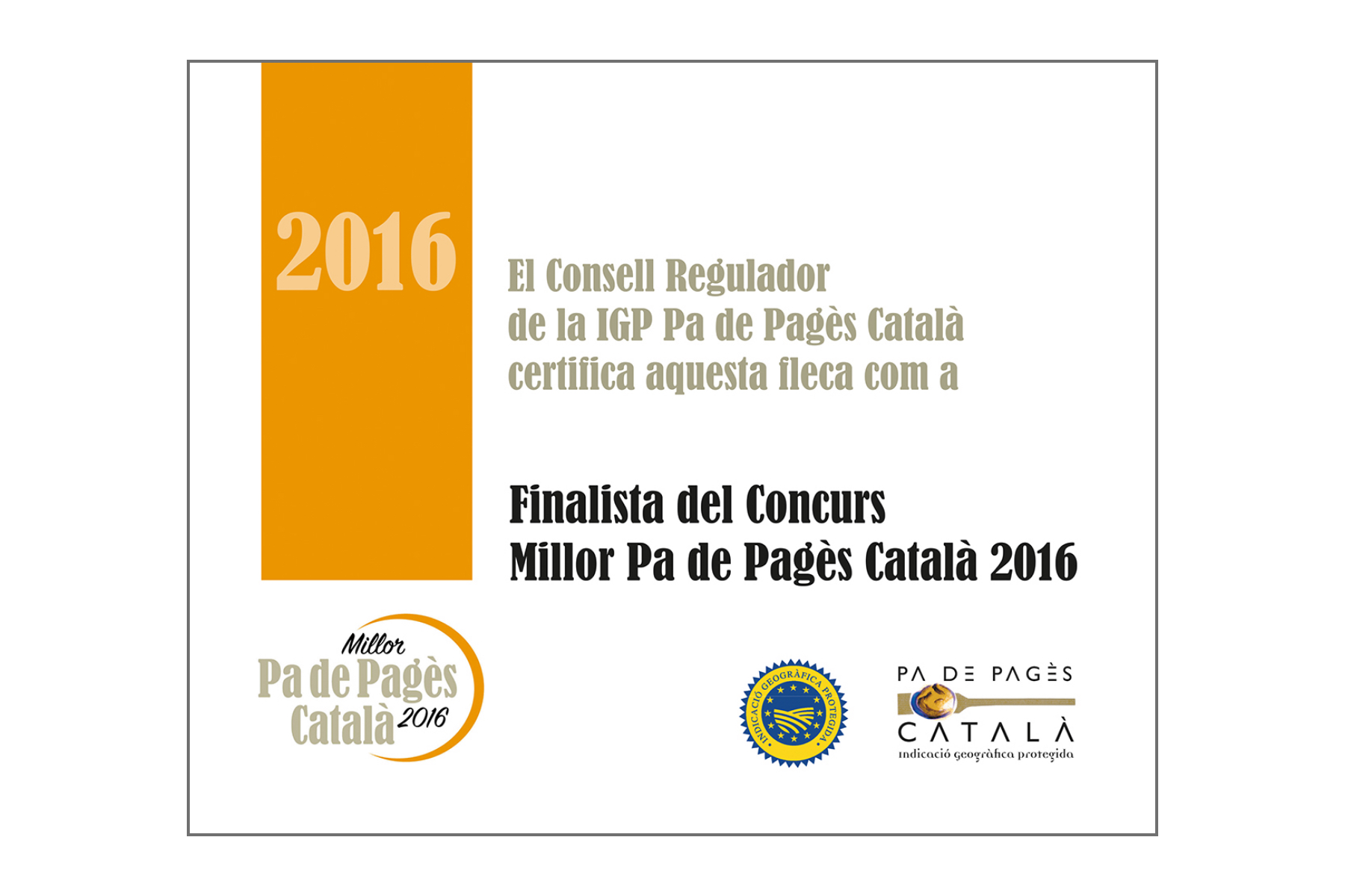 Els anys 2016, 2017 i 2018 hem estat finalistes del concurs “Millor Pa de Pagès Català” i l’any 2019 guanyadors de l’esmentat concurs.